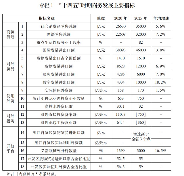 浙江省人民政府办公厅关于印发浙江省商务高质量发展“十四五”规划的通知 |