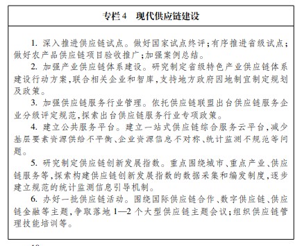 (三)畅通国内循环,健全现代商贸流通体系。 1.积极培育现代商贸流通主体。支持龙头企业通过直营连锁、联合、兼并、电子商务等形式拓展经营网络,打造若干拥有自主品牌、主业突出、竞争力强的大型流通集团。培育一批“链主”企业,引导商贸企业、物流企业、商品市场等向供应链综合服务商转型。鼓励中小商贸企业加强创新,鼓励各类社区、街区小店特色化、便民化、标准化、连锁化、数字化经营。支持商贸企业开展线上线下一体化经营。 2.推动商贸流通网点建设。实施批零改造强流通行动,建设一批辐射带动能力强的商业中心、专业市场、区域性配送中心等,引导行业适度集聚发展。加快商贸市场数字化转型,培育一批具有全球竞争力的商贸枢纽型市场。提升社区商业,打造“5分钟便利店+10分钟农贸市场+15分钟超市”生活服务圈。加快改善村镇消费环境,解决好农村网购“最后一公里”,鼓励大型流通企业向农村延伸经营网络。推动农村电子商务提质增效,深入实施电子商务进农村综合示范工程,鼓励新零售、跨境电子商务等企业在村镇开设体验店,畅通农产品进城和工业品下乡双向流通渠道。加强商贸流通标准化建设,推动电子商务绿色循环发展。完善预拌混凝土、砂浆、水泥预制构件企业布局,促进清洁生产,进一步推进散装水泥专用车辆安全共治系统建设。 3.构建现代智慧商贸物流体系。加强新技术在物流配送中的应用,支持企业建设区域性仓储物流集散中心,完善农产品流通骨干网。加快布局冷链物流分拨中心,完善冷链物流配送网点,构建“骨干基地—物流园区—分拨中心—配送网点”4级功能布局体系。 4.推进内外贸一体化发展。推进内外贸政策、监管体制、经营资质、质量标准、认证认可等相衔接,推动出口产品在国际国内两个市场之间顺畅切换。扩大内外销产品“同线同标同质”实施范围,鼓励出口企业与国内大型商贸流通企业对接,多渠道搭建内销平台。深入实施“浙货行天下”工程,搭建公共推介平台,开展浙货“北上”“南下”“东进”“西拓”行动。